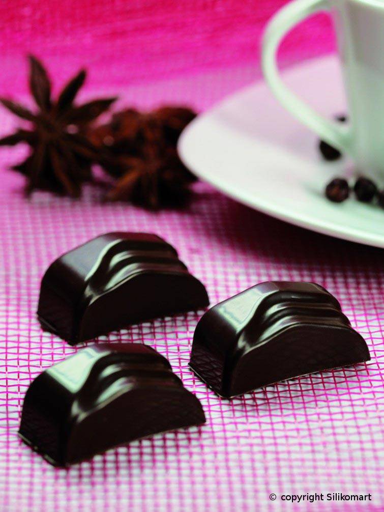 Kvaliteetne vorm šokolaadikommide valmistamiseks. Pakendatud kinkekarpi. Võib pesta nõudepesumasinas! Vorm kannatab temperatuure -60C kuni +230C.