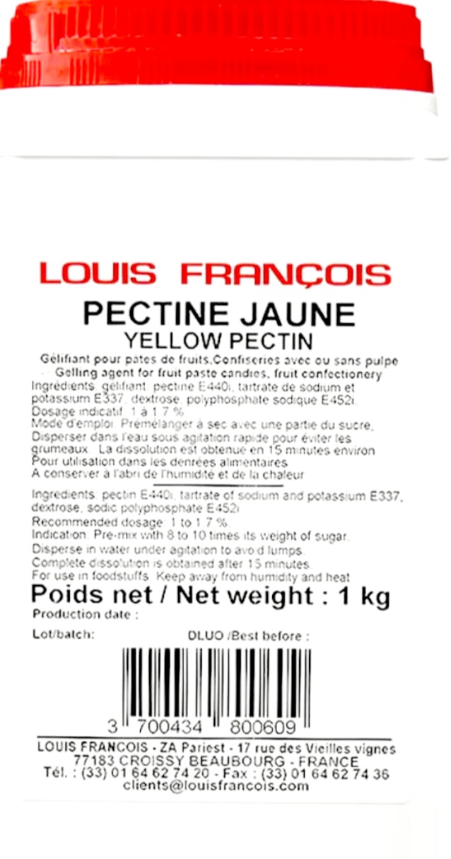 Tarretav aine puuviljapastakommide ja puuviljakondiitritoodete jaoks.Kollane pektiin; želeeriv aine, kuumutatuna hapus ja magusas vedelikus annab tiheda želee. 10-12 g/kgKasutamisõpetus: Sega pektiinipulber eelnevalt pulbriliste koostisosadega (nt suhkur vm), lahusta vees,samal ajal kiiresti segades. Lahustumisaeg umbes 15min.