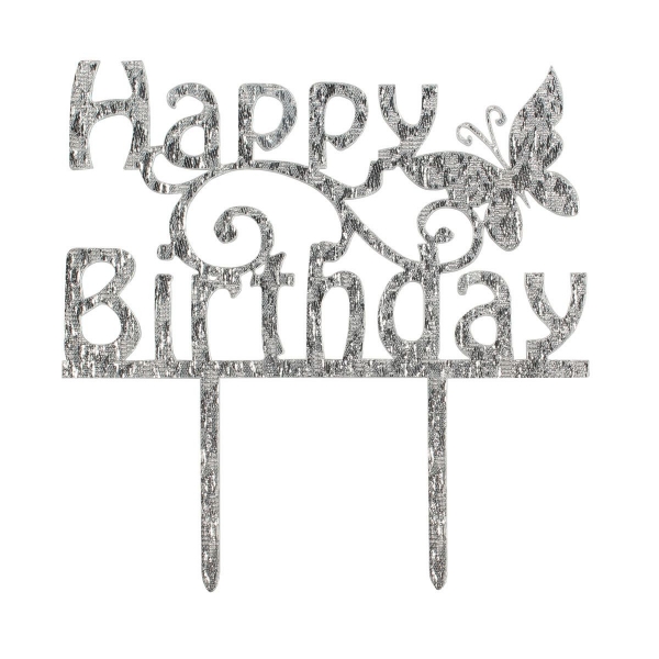 Topper Happy Birthday hõbedane